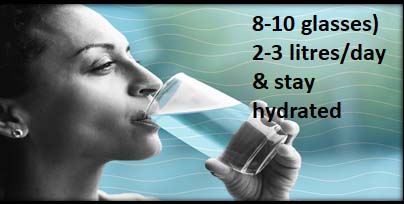 Drink enough fluids to keep your urine a pale-yellow colour to prevent complications of dehydration